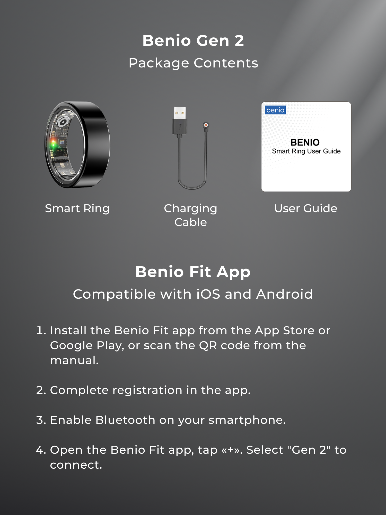 Benio Gen 2 - Smart Ring with Health Monitoring - Black